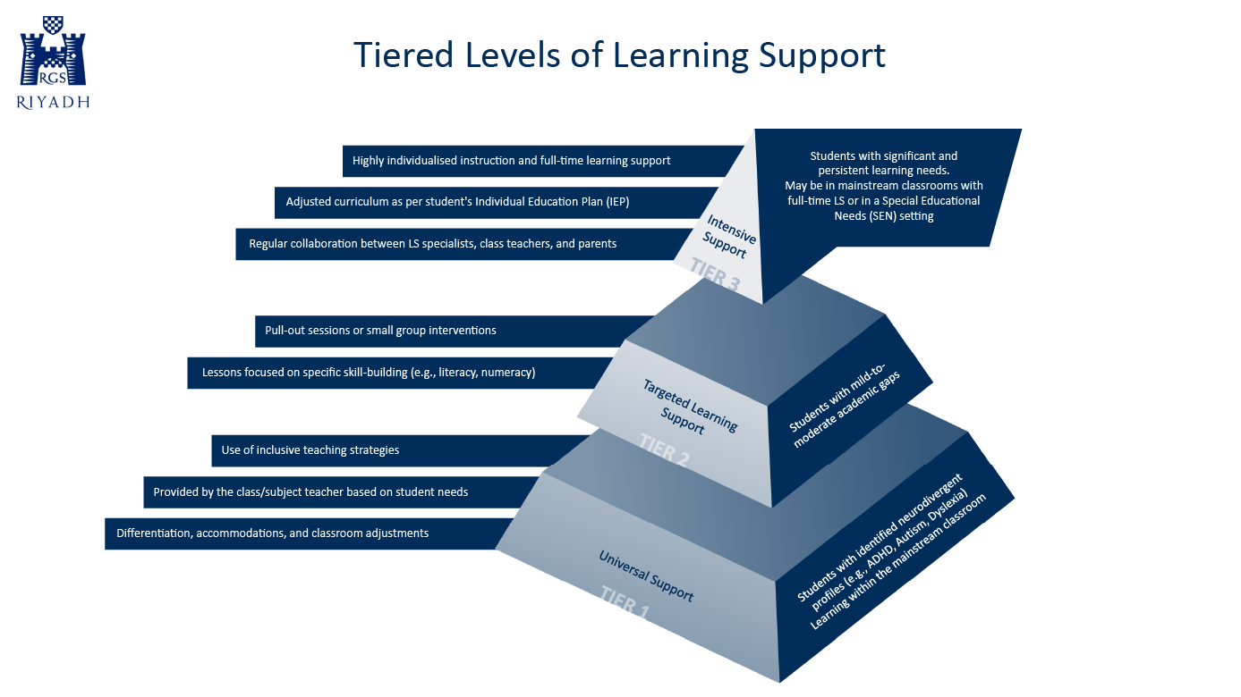RGSR follows a three-tiered framework to ensure the right level of support for each learner: