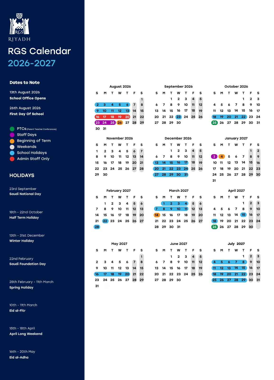 Tuesday 23rd September 2026 Saudi national Day (School Closed)